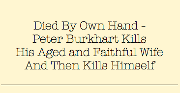 newspaper headline that read “Died By Own Hand – Peter Burkhart Kills