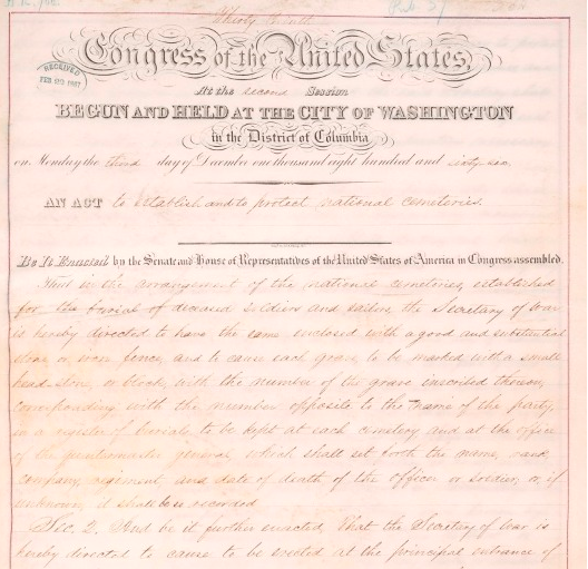 first National Cemetery Act was passed on February 22, 1867. It provided funding in the amount of